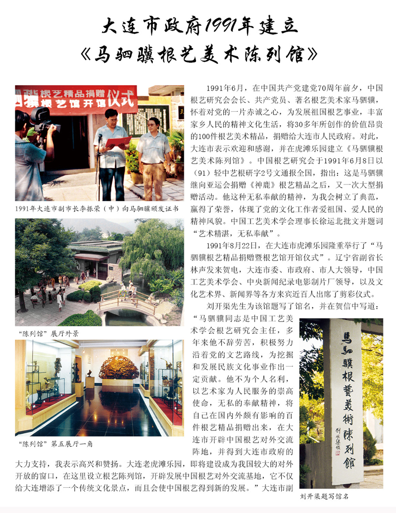 大连“马驷骥根艺美术陈列馆学术传承基地”
